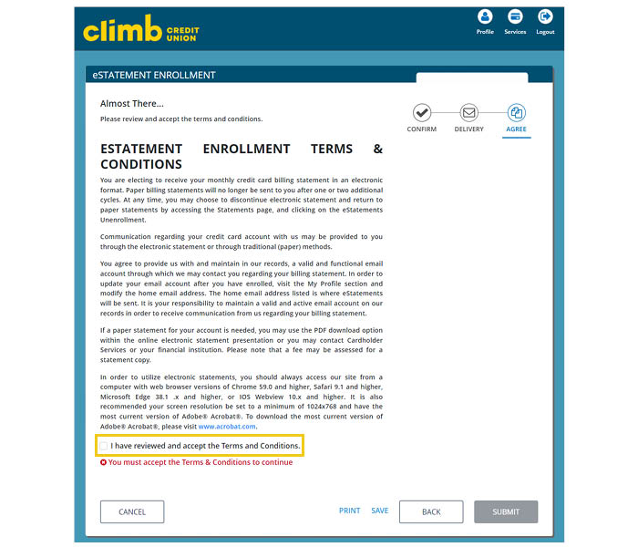 Log into your Climb Online Banking account. If you don’t have an account, you’ll need to create an online banking account.